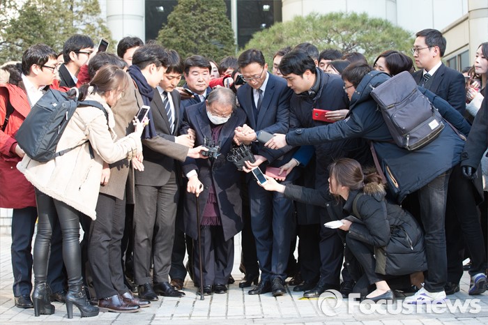 (서울=포커스뉴스) 조세포탈과 횡령·배임 등의 혐의로 기소된 조석래 효성그룹 회장이 15일 오후 서울 서초구 서울중앙지법에서 열린 1심 선고 공판을 끝내고 법정을 나서고 있다.