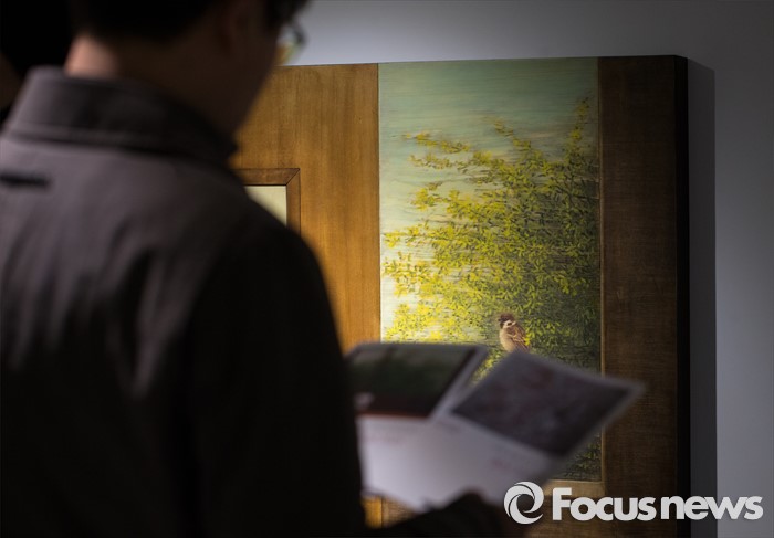 (서울=포커스뉴스) 15일 오후 서울 용산구 갤러리 조은에서 김덕용, 전병현 작가의 '갤러리 조은 개관전'이 열리고 있는 가운데 관람객이 김덕용 작가의 작품을 감상하고 있다.