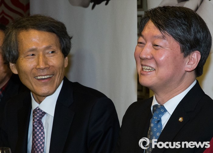 (서울=포커스뉴스) 한상진(왼쪽) 국민의당 창당준비위원장과 안철수(오른쪽) 인재영입위원장이 15일 오후 서울 관악구 한 태국 식당에서 진행된 故 김대중 전 대통령 재임 당시 자문정책기획위원회 모임에 참석해 미소짓고 있다.