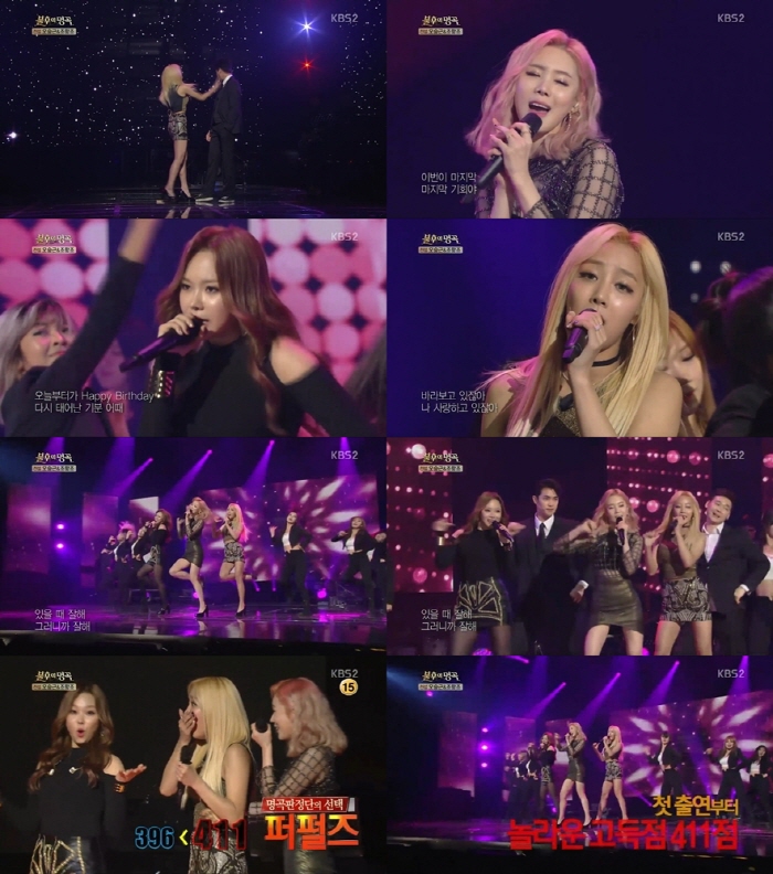 퍼펄즈는 첫 출연임에도 411점이라는 고득점을 달성하며 오승근의 ‘내 나이가 어때서’를 부른 김바다를 제치고 1승을 달성해 실력파 걸그룹임을 입증했다.