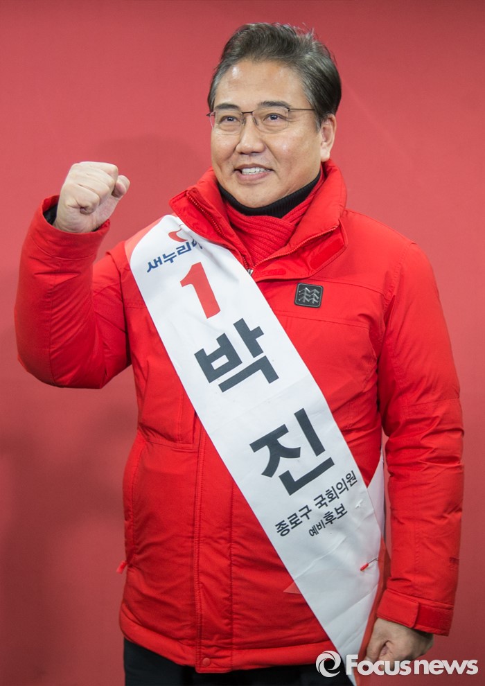 (서울=포커스뉴스) 서울 종로 새누리당 예비 후보인 박진 전 의원이 17일 오후 서울 여의도 새누리당사에서 오세훈 전 서울시장의 종로 출마선언에 대한 입장을 밝히기 위해 기자회견장을 들어서며 불끈 쥔 주먹을 보이고 있다.