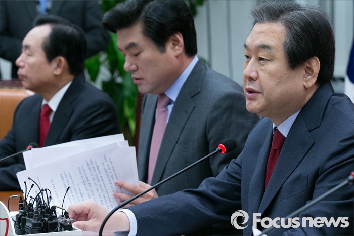 (서울=포커스뉴스) 김무성(오른쪽) 새누리당 대표가 18일 오전 서울 여의도 국회에서 열린 최고위원회의에 참석해 발언하고 있다.