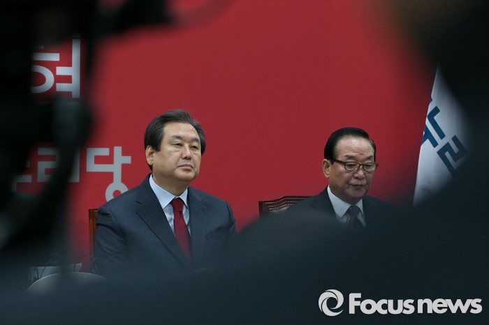 (서울=포커스뉴스) 김무성(왼쪽) 새누리당 대표가 18일 오전 서울 여의도 국회에서 열린 최고위원회의에 참석해 생각에 잠겨 있다.