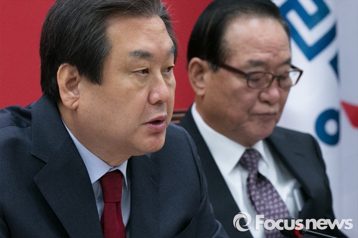 (서울=포커스뉴스) 김무성(왼쪽) 새누리당 대표가 18일 오전 서울 여의도 국회에서 열린 최고위원회의에 참석해 발언하고 있다.