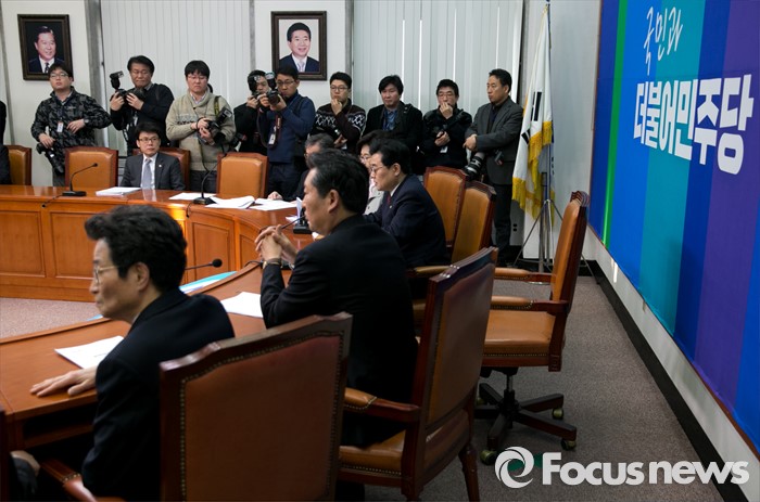 (서울=포커스뉴스) 문재인 더불어민주당 대표가 18일 오전 서울 여의도 국회에서 열린 최고위원회의에 참석해 모두발언을 마친 뒤 잠시 자리를 비워 빈 자리가 보이고 있다.