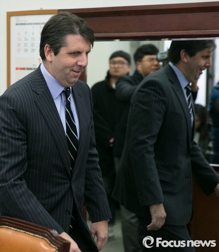 (서울=포커스뉴스) 4개국 외교사절(미국, 영국, 호주, EU)을 대표해 마크 리퍼트 주한미국대사가 18일 오전 서울 여의도 국회를 방문해 외국법자문사법 개정안과 관련 논의를 위해 이상민 법제사법위원장실로 들어서고 있다.