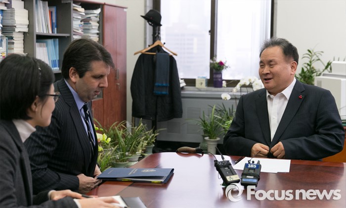 (서울=포커스뉴스) 이상민(오른쪽) 법제사법위원장이 18일 오전 서울 여의도 국회 위원장실에서 4개국 외교사절(미국, 영국, 호주, EU)을 대표해 방문한 마크 리퍼트(가운데) 주한미국대사와 외국법자문사법 개정안과 관련 논의를 하고 있다.
