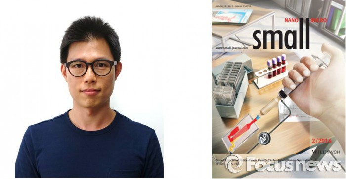 연구결과는 나노 및 마이크로 공학분야 권위지인 '스몰(Small)'지 표지논문으로 13일 게재됐다.최성용 경희대 생체의공학과 교수(왼쪽)와 지난 13일 나노 및 마이크로 공학분야 권위지 스몰(Small)지 표지논문으로 게재된 최 교수팀 논문. <사진제공=경희대학교>