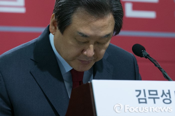 (서울=포커스뉴스) 김무성 새누리당 대표가 18일 오전 서울 여의도 국회 의원회관에서 신년 기자회견 전 인사하고 있다.