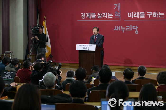 (서울=포커스뉴스) 김무성 새누리당 대표가 18일 오전 서울 여의도 국회 의원회관에서 신년 기자회견을 하고 있다.