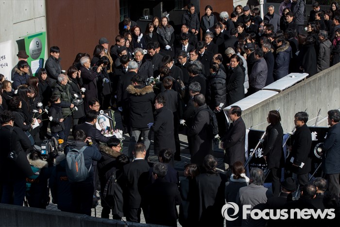 (서울=포커스뉴스) 18일 오후 서울 구로구 성공회대학교 대학성당에서 故 신영복 석좌교수 영결식이 끝나고 고인의 영정과 유해가 운구되고 있다.