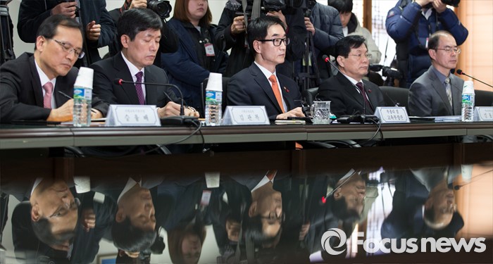 (서울=포커스뉴스) 18일 오후 서울 종로구 정부서울청사에서 이준식(가운데) 부총리 겸 교육부 장관이 전국 시도교육감협의회 회장단 간담회에 참석해 장휘국 광주시교육감의 모두발언을 경청하고 있다.
