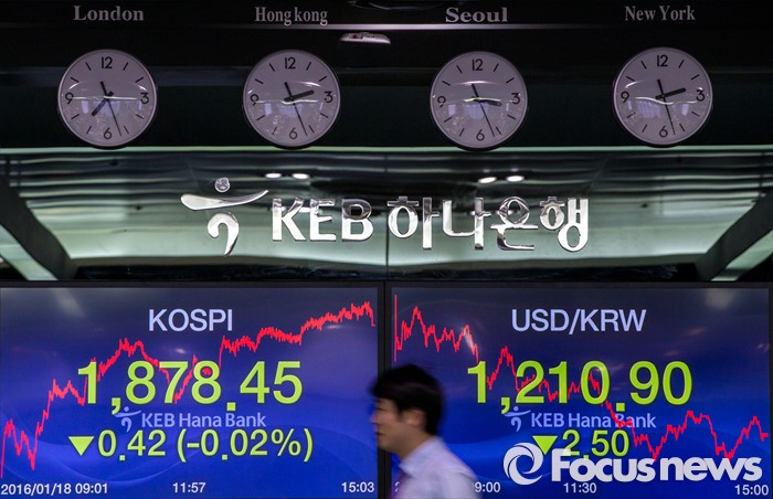 (서울=포커스뉴스) 코스피 지수가 중국 경제에 대한 불안감과 국제유가 하락 등의 여파로 전 거래일 대비 0.42포인트(0.02%) 하락한 1878.45로 마감한 18일 오후 서울 중구 KEB하나은행 딜링룸에서 딜러들이 업무를 보고 있다. 이날 원달러 환율은 전 거래일보다 1.5원 하락한 1,210.9원, 원위안 환율은 전거래일보다 0.63원 오른 183.93원에 장을 마쳤다.