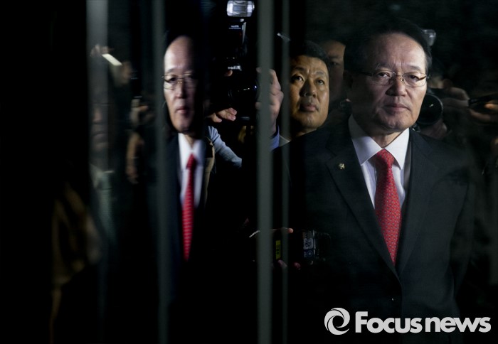(서울=포커스뉴스) 새누리당이 단독으로 직권상정 완화 국회법 개정 시도에 착수한 19일 오전 정의화 국회의장이 서울 여의도 국회에서 엘레베이터를 기다리며 취재진 질문을 받고 있다.