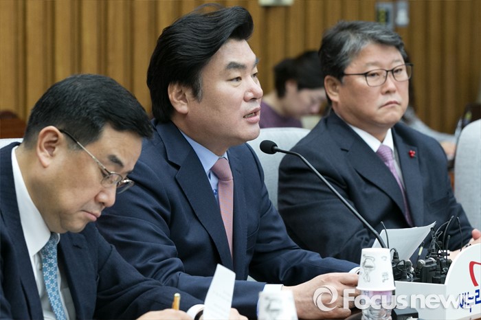 (서울=포커스뉴스) 원유철(가운데) 새누리당 원내대표가 19일 오전 서울 여의도 국회에서 열린 원내대책회의에 참석해 모두발언하고 있다.