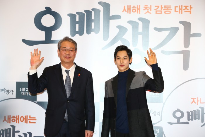 이날 임종룡 위원장은 핀테크 홍보대사로 활동하고 있는 배우 임시완 응원차 시사회에 참석했는데, 행사에는 임종룡 위원장 외에 서태종 금융감독원 수석 부원장, 하영구 은행연합회장, 황영기 금융투자협회장, 이광구 우리은행장, 권선주 기업은행장 등 각 협회장 및 금융권 CEO들이 참석했다.18일 서울 삼성동 코엑스 메가박스에서 열린 영화 '오빠생각' VIP시사회에서 임종룡 금융위원장(사진 왼쪽)이 핀테크 홍보대사인 배우 임시완이 포즈를 취하고 있다.<사진제공=금융위원회>