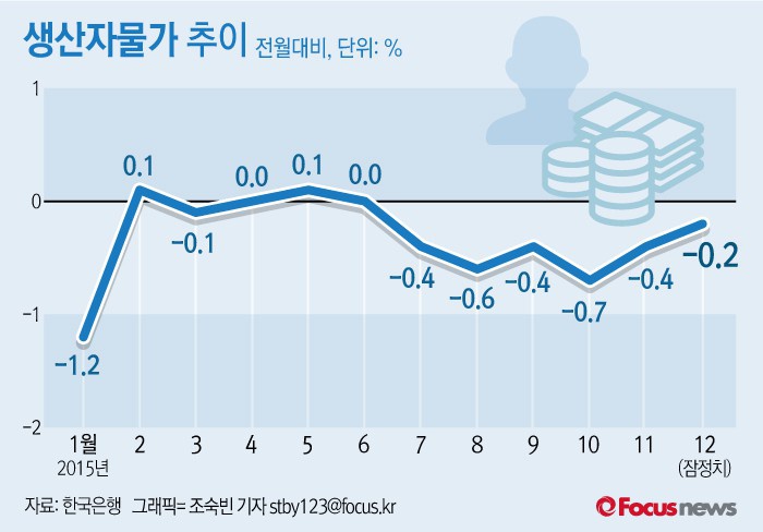 (서울=포커스뉴스) 국제유가 하락 영향으로 지난해 12월 생산자 물가지수가 5년 8개월 만에 최저수준을 나타냈다.