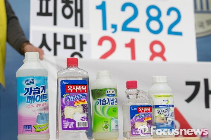 (서울=포커스뉴스) 19일 오전 서울 여의도 국회 정론관에서 열린 가습기 살균제 피해자 가족들의 3차 피해자 접수에 대해 추가 · 연장을 요청하는 기자회견에 가습기 살균제가 놓여 있다.