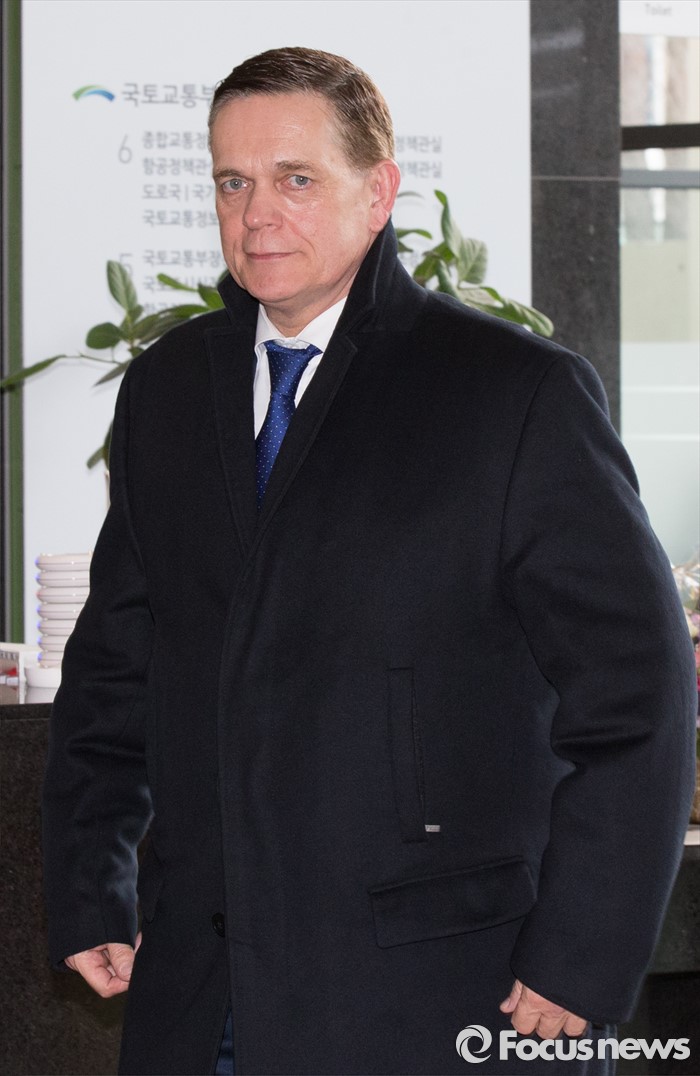 (세종=포커스뉴스) 요하네스 타머 아우디폭스바겐코리아 사장과 프리드리히 요한 아이히러 독일 폭스바겐 파워트레인 총괄책임자 등 독일본사 직원들이 19일 오전 세종시 정부세종청사 환경부 교통환경과에서 결함시정 관련 기술적 내용을 설명하고 환경부를 나서고 있다.