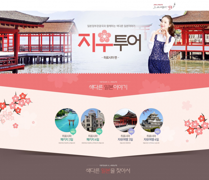 '지우투어-히로시마편'은 히로시마 뿐 만 아니라 근접해 있는 미야지마, 이와쿠니, 쿠라시키를 함께 둘러보는 일정의 상품을 소개하고 있다.