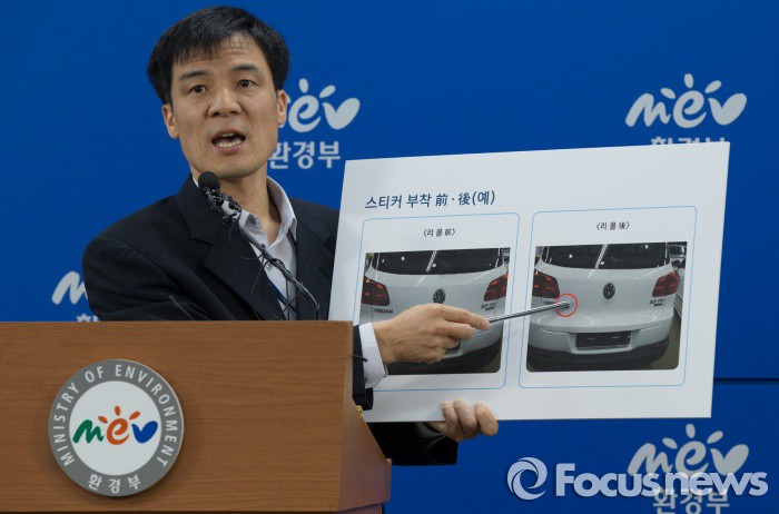 폭스바겐은 미국 유럽 등에 이번 배출가스 조작 관련한 원인과 리콜에 대해 구체적인 내용을 제출하지 않고 있으며, 이들 국가에서는 환경부 대신 공정거래위원회가 ‘광고’ 관련 법 위반으로 검찰에 고발하는 우회적인 방법을 취하고 있다.(세종=포커스뉴스) 26일 오전 세종시 정부세종청사 환경부 기자실에서 홍동곤 교통환경과 과장이 폭스바겐 경유차 6개 차종 7대에 대한 배기가스 불법조작 검사결과를 발표하고 있다. 2015.11.26 김기태 기자