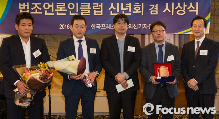 (서울=포커스뉴스) 19일 오후 서울 중구 프레스센터에서 열린 법조언론인클럽 신년회 겸 시상식에서 올해의 법조언론인상을 받은 한국일보 법조팀이 기념촬영을 갖고 있다.