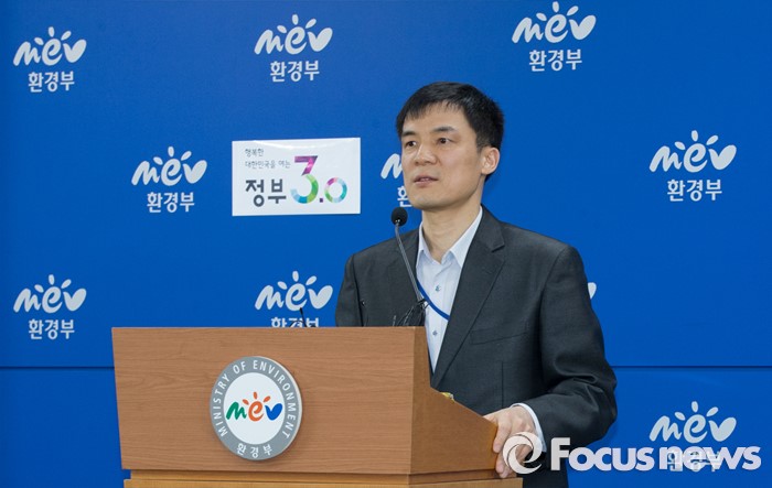 (세종=포커스뉴스) 홍동곤 환경부 교통환경과장이 19일 세종시 정부세종청사 환경부 기자실에서 브리핑을 갖고 아우디폭스바겐코리아 사장 형사고발 관련 입장을 밝히고 있다.