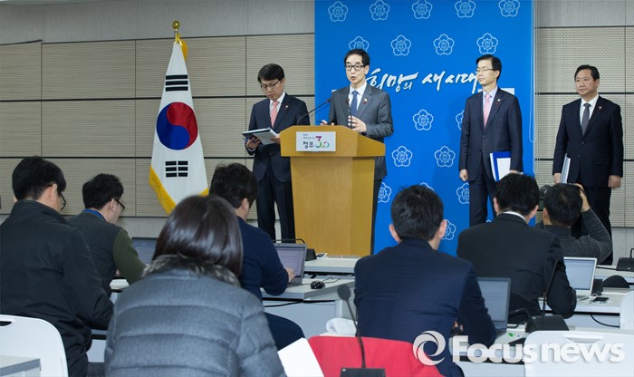 (세종=포커스뉴스) 이준식 사회부총리 겸 교육부장관이 19일 오전 세종시 정부세종청사 교육부 공용브리핑룸에서 국민행복분야 정부합동 업무보고 사전브리핑을 하고 있다. 왼쪽부터 고영선 고용노동부 차관, 이 부총리, 방문규 보건복지부 차관, 권용현 여성가족부 차관.
