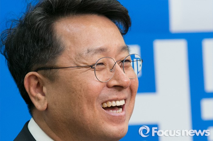 (서울=포커스뉴스) 이철희 두문정치연구소 소장이 20일 오전 서울 여의도 국회 더불어민주당 대표실에서 열린 입당 기자회견에 참석해 환하게 웃고 있다.