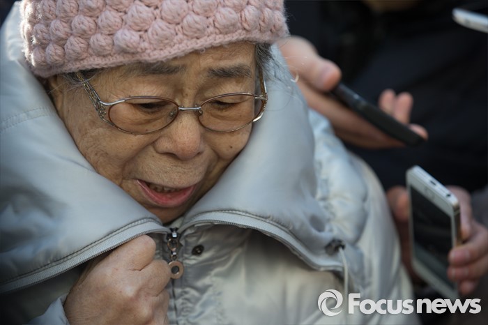 (서울=포커스뉴스) 책 '제국의 위안부'를 써 일본군 위안부 피해자들의 명예를 훼손했다는 혐의로 재판을 받게 된 박유하 세종대 국제학부 교수에 대한 공판이 열린 20일 오전 서울 광진구 동부지방법원에서 공판이 끝난 뒤 위안부 피해자 유희남 할머니가 취재진의 질문에 답변하고 있다.
