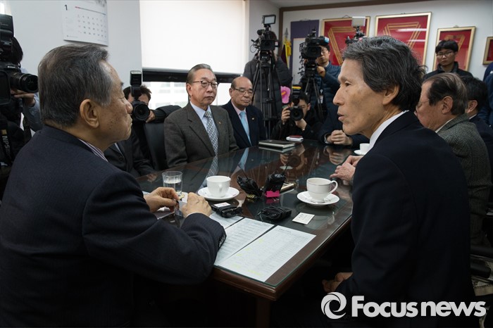 (서울=포커스뉴스) 한상진 국민의당 창당준비위원장이 20일 오전 서울 여의도 광복회를 방문해 박유철 광복회장과 대화를 나누고 있다.