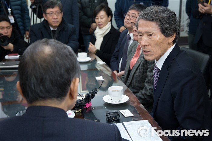 (서울=포커스뉴스) 한상진 국민의당 창당준비위원장이 20일 오전 서울 여의도 광복회를 방문해 박유철 광복회장과 대화를 나누고 있다.