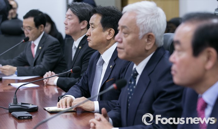 (서울=포커스뉴스) 20일 오전 서울 여의도 국회 의원회관에서 열린 국민의당 소속 의원단 회의에 참석한 의원들이 회의를 하고 있다.