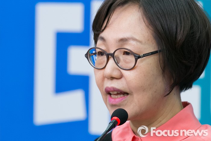 (서울=포커스뉴스) 권미혁 한국여성단체연합 전 대표가 20일 오전 서울 여의도 국회 더불어민주당 대표실에서 열린 입당 기자회견에 참석해 인사말을 하고 있다.