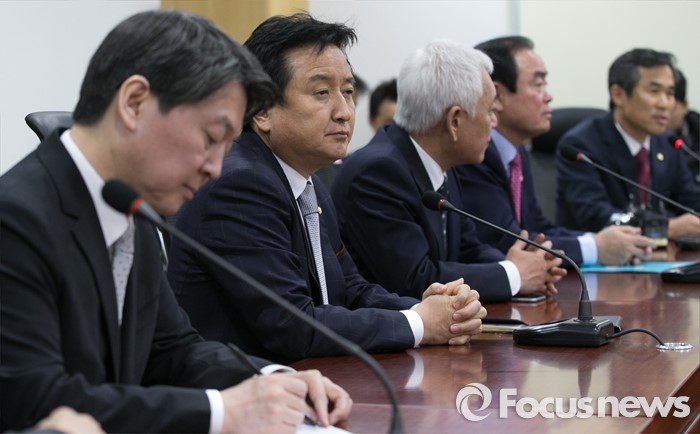 (서울=포커스뉴스) 20일 오전 서울 여의도 국회 의원회관에서 열린 국민의당 소속 의원단 회의에 참석한 의원들이 회의를 하고 있다.