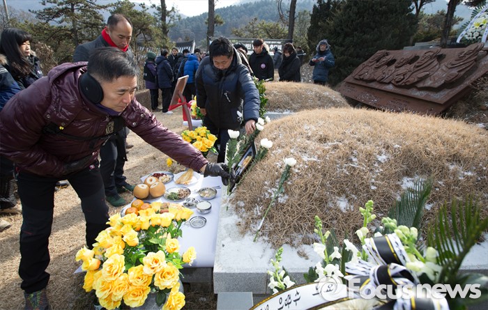 (남양주=포커스뉴스) 20일 오후 경기도 남양주시 모란공원묘지에서 열린 '용산참사 7주기 철거민 민중열사 추모제'에서 용산참사7주기 추모위원회를 비롯한 유족들이 헌화를 하고 있다.