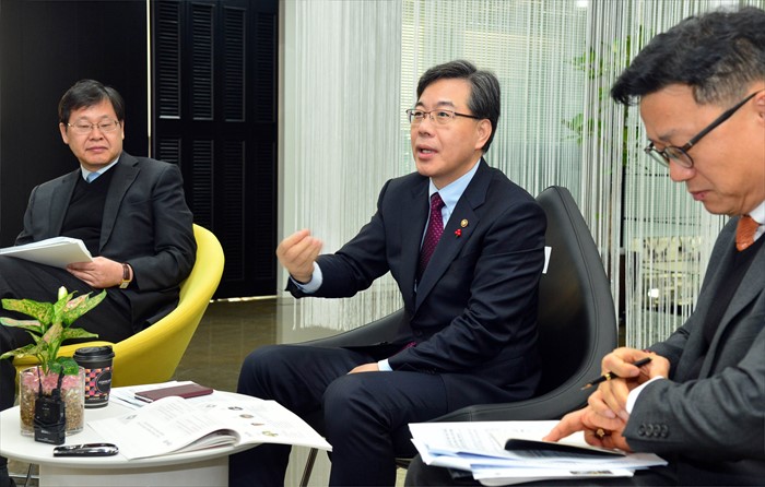 (서울=포커스뉴스) 송언석 기획재정부 차관이 20일 서울 중구 다동 문화창조벤처단지를 현장 방문해 관계자들과 간담회를 갖고 있다. <사진제공=기획재정부>