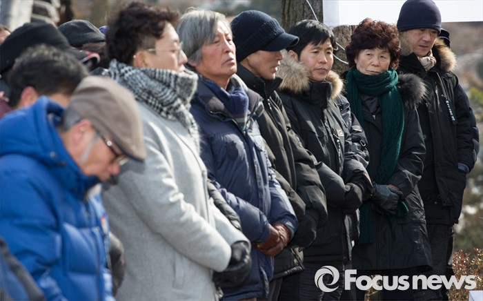 (남양주=포커스뉴스) 20일 오후 경기도 남양주시 모란공원묘지에서 용산참사7주기 추모위원회를 비롯한 유족들이 '용산참사 7주기 철거민 민중열사 추모제'를 하고 있다.