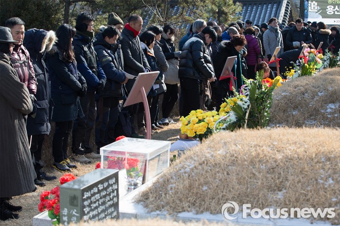 (남양주=포커스뉴스) 20일 오후 경기도 남양주시 모란공원묘지에서 용산참사7주기 추모위원회를 비롯한 유족들이 '용산참사 7주기 철거민 민중열사 추모제'를 하고 있다.