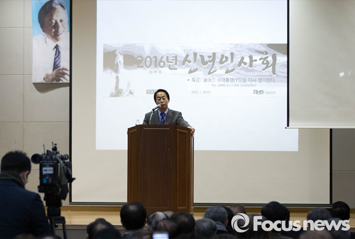(서울=포커스뉴스)김영삼 전 대통령 차남 김현철씨가 오전 서울 동작구 김영삼대통령 기념도서관에서 열린 민주동지회 신년 인사모임에 참석, 발언을 하고 있다.