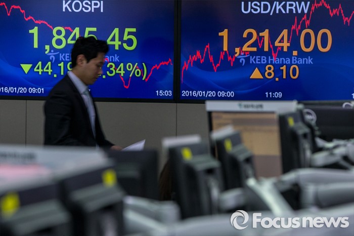 (서울=포커스뉴스) 코스피 지수가 외국인과 기관의 매도 공세에 전 거래일보다 44.19포인트(2.34%) 하락한 1,845.45에 거래를 마친 20일 오후 서울 중구 KEB하나은행 딜링룸에서 한 딜러가 업무를 보고 있다. 이날 원달러 환율은 전 거래일보다 8.1원 오른 1214원에 거래를 마감했다.
