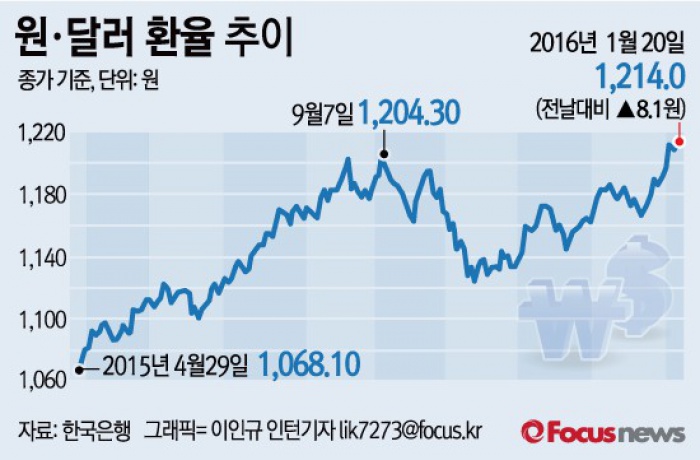 (서울=포커스뉴스) 20일 서울 외환시장에서 원·달러 환율은 전날대비 8.1원 상승한 1214.0원에 거래를 마쳤다.