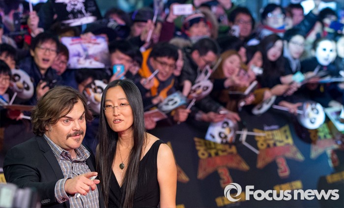 (서울=포커스뉴스) 할리우드 애니메이션 '쿵푸팬더 3' 홍보차 내한한 배우 잭 블랙과 여인영 감독이 20일 오후 서울 영등포구 타임스퀘어에서 열린 레드카펫 행사에 참석하고 있다.