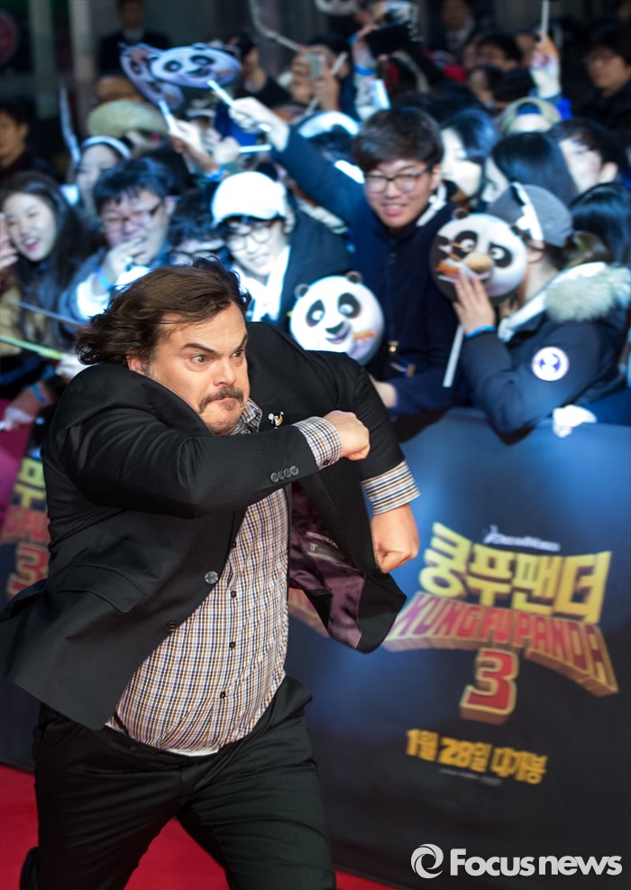 (서울=포커스뉴스) 할리우드 애니메이션 '쿵푸팬더 3' 홍보차 내한한 배우 잭 블랙이 20일 오후 서울 영등포구 타임스퀘어에서 열린 레드카펫 행사에 참석해 팬들을 향해 달려가고 있다.