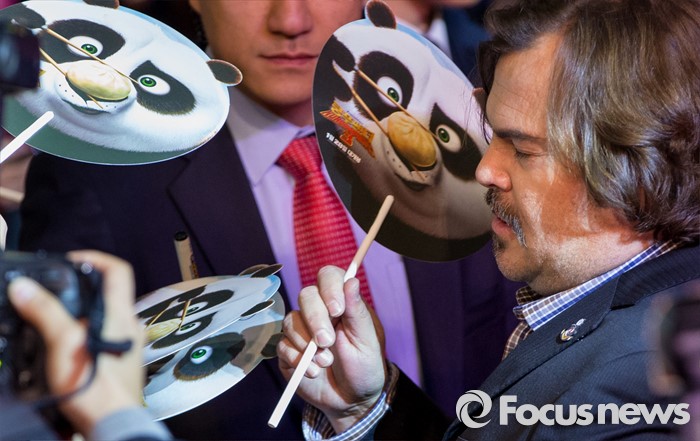 (서울=포커스뉴스) 할리우드 애니메이션 '쿵푸팬더 3' 홍보차 내한한 배우 잭 블랙과 여인영 감독이 20일 오후 서울 영등포구 타임스퀘어에서 열린 레드카펫 행사에 참석해 팬들에게 사인해주고 있다.