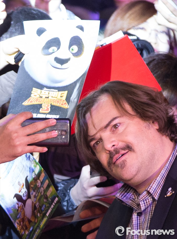 (서울=포커스뉴스) 할리우드 애니메이션 '쿵푸팬더 3' 홍보차 내한한 배우 잭 블랙이 20일 오후 서울 영등포구 타임스퀘어에서 열린 레드카펫 행사에 참석해 팬들과 기념촬영을 하고 있다.