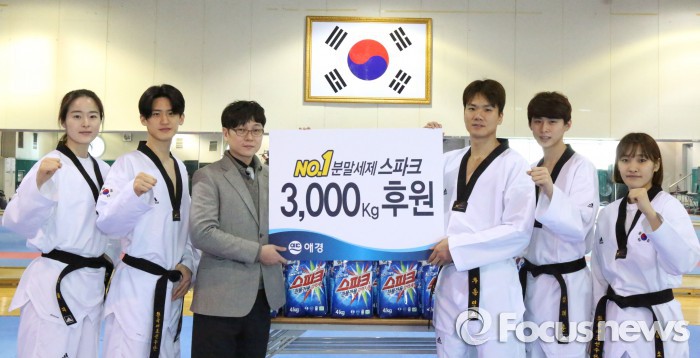 (서울=포커스뉴스)애경의 세탁세제 브랜드 스파크는 올해 올림픽을 앞두고 태권도 국가대표 선수들을 응원하기 위한 ‘대한민국 대표 스포츠 태권도 국가대표의 깨끗한 흰색 도복을 책임집니다’ 행사를 지난 20일 태릉선수촌에서 진행했다.