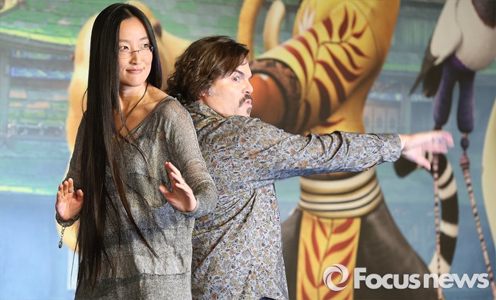 (서울=포커스뉴스) 21일 오전 서울 영등포구 콘래드 서울호텔에서 열린 쿵푸팬더3 기자간담회에 참석한 여인영(왼쪽) 감독과 배우 잭 블랙이 포토타임을 갖고 있다.