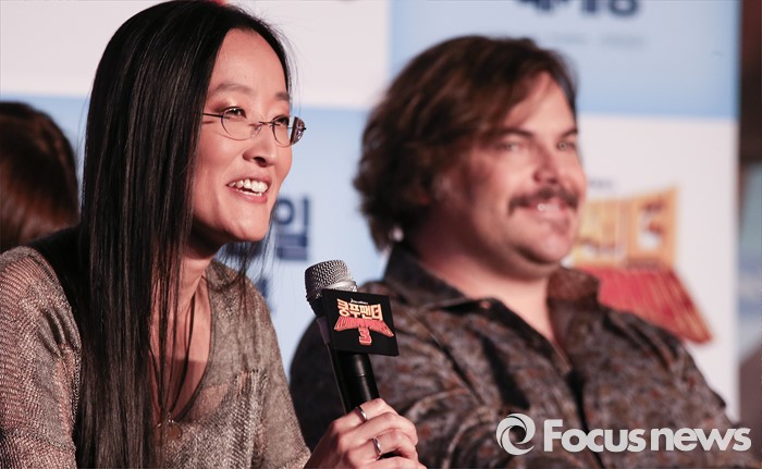 (서울=포커스뉴스) 21일 오전 서울 영등포구 콘래드 서울호텔에서 열린 쿵푸팬더3 기자간담회에 참석한 여인영 감독(왼쪽)이 인사말을 하고 있다.