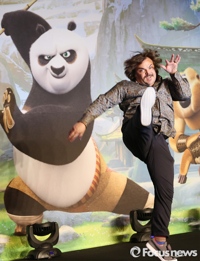 (서울=포커스뉴스) 21일 오전 서울 영등포구 콘래드 서울호텔에서 열린 쿵푸팬더3 기자간담회에 참석한 배우 잭 블랙이 포토타임을 갖고 있다.